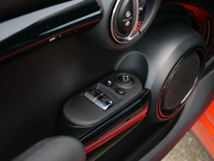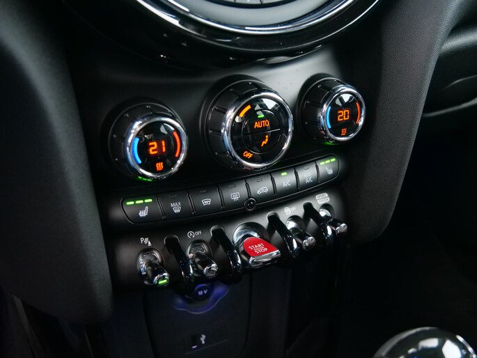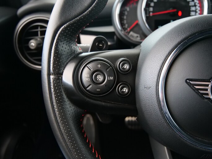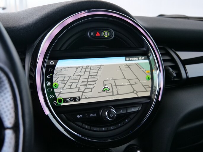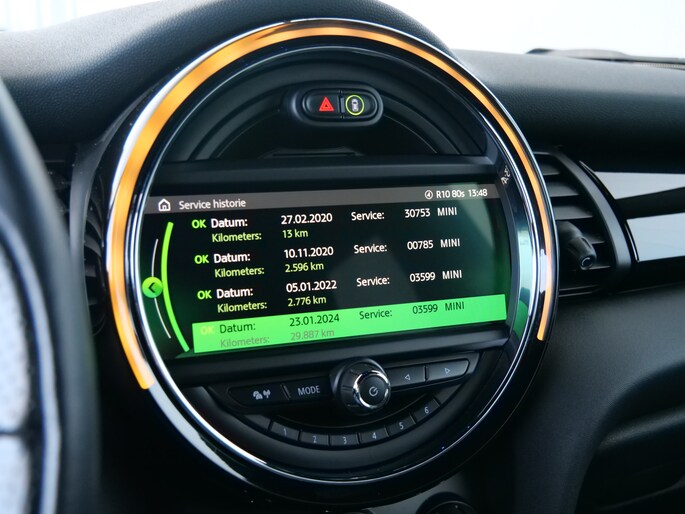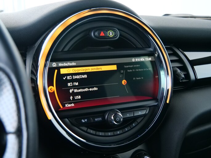 In één oogopslag heeft u alle benodigde functies onderweg in beeld, dankzij het slim ingedeelde digitale dashboard. Kommaar-kommaar-kommaar, aldus de achteruitrijcamera. Iedere centimeter vrije ruimte komt haarscherp in beeld. Schadevrij inparkeren maar! In deze auto klinkt uw favoriete muziek nog beter dankzij het high performance audiosysteem. Bij de luxe van deze auto hoort ook automatische airconditioning. Om de veiligheid onderweg te verhogen, heeft deze MINI zowel een automatisch inschakelbare verlichting als een regensensor aan boord, zodat hij zelf de verlichting en de ruitenwissers kan inschakelen. Natuurlijk behoren full map navigatiesysteem, schakelpaddles aan het stuur, DAB ontvangst, cruise control, keyless entry en automatisch dimmende binnenspiegel ook tot de uitrusting van deze complete auto.