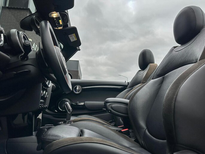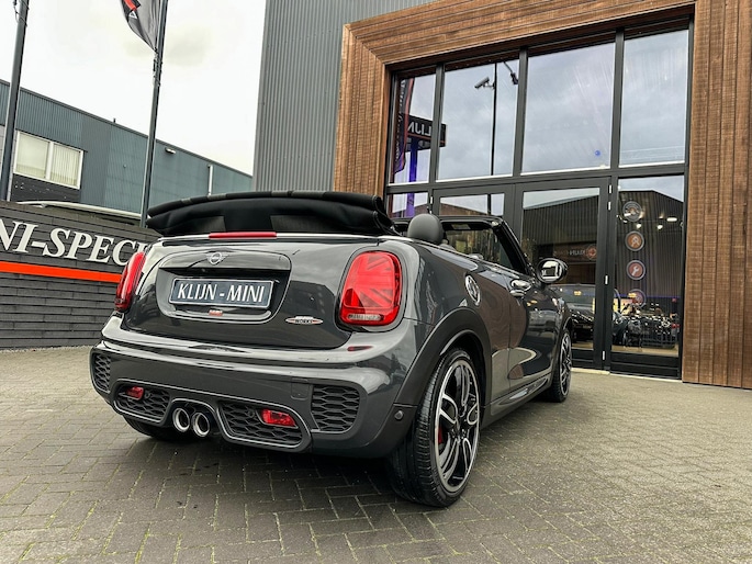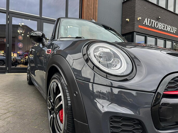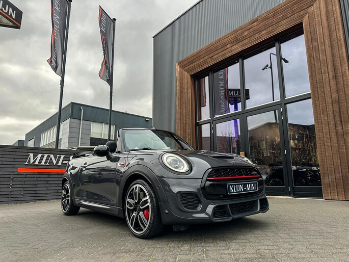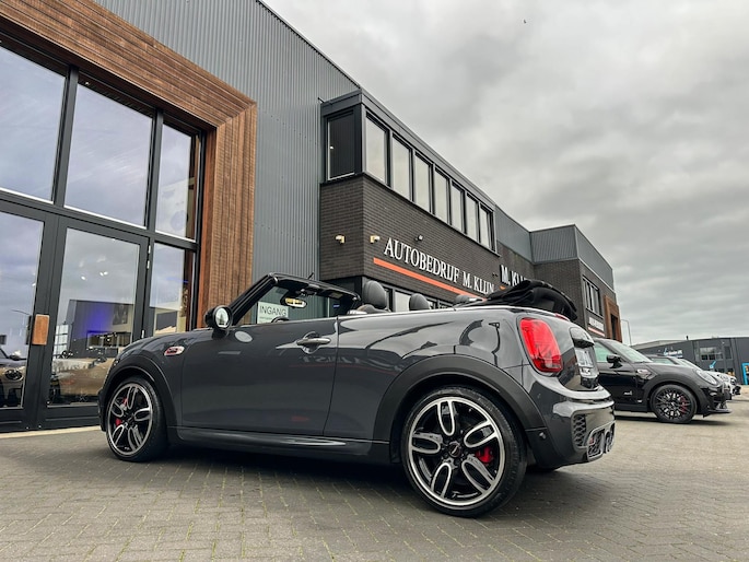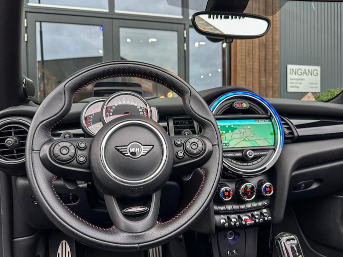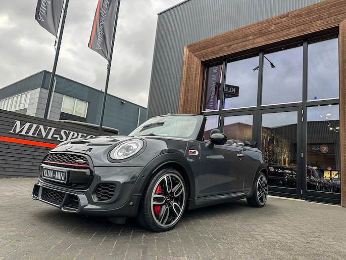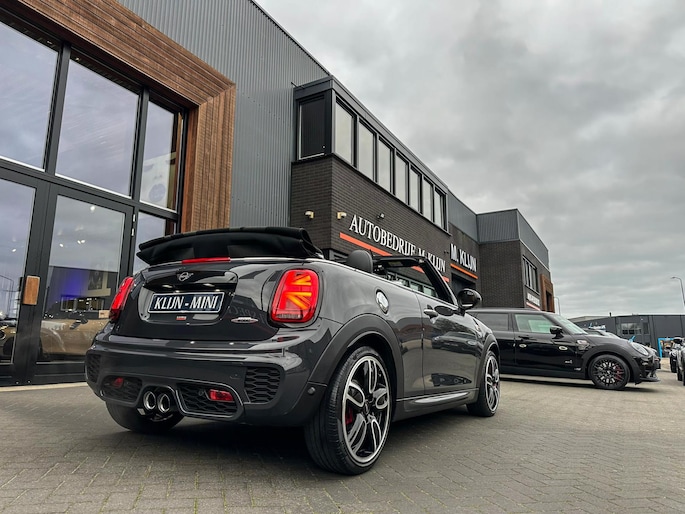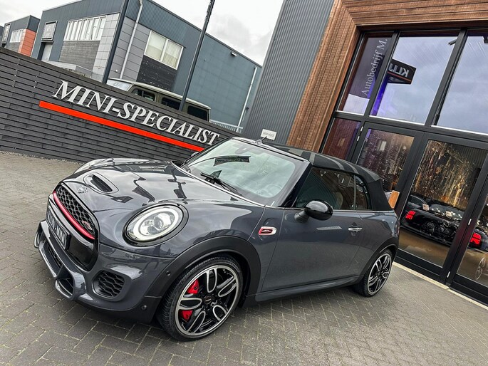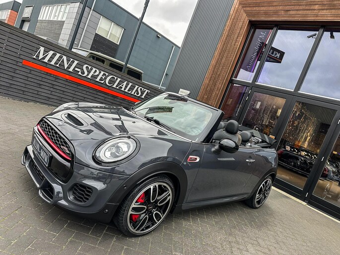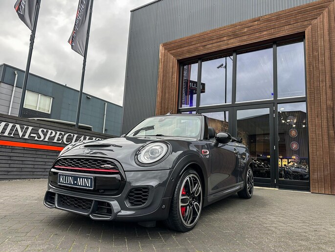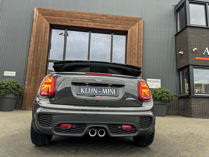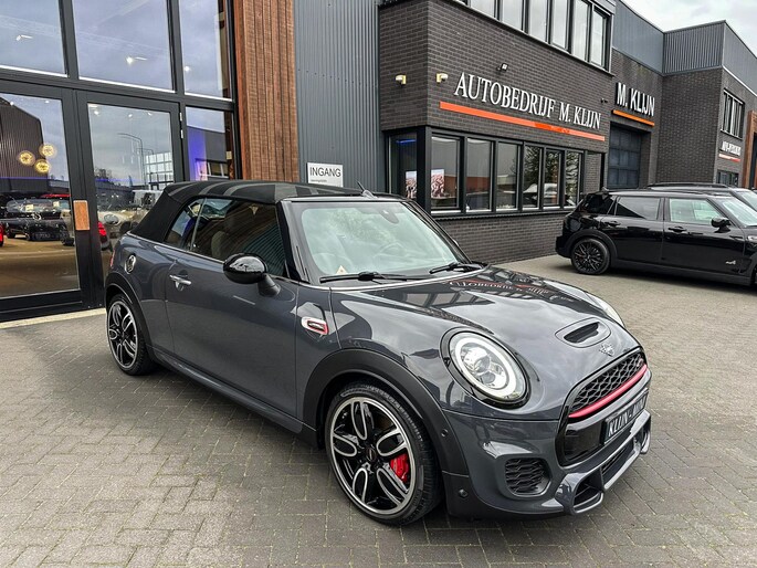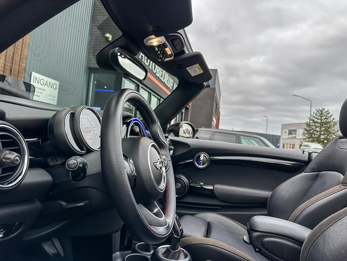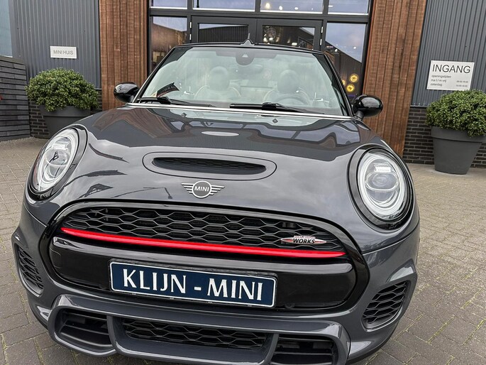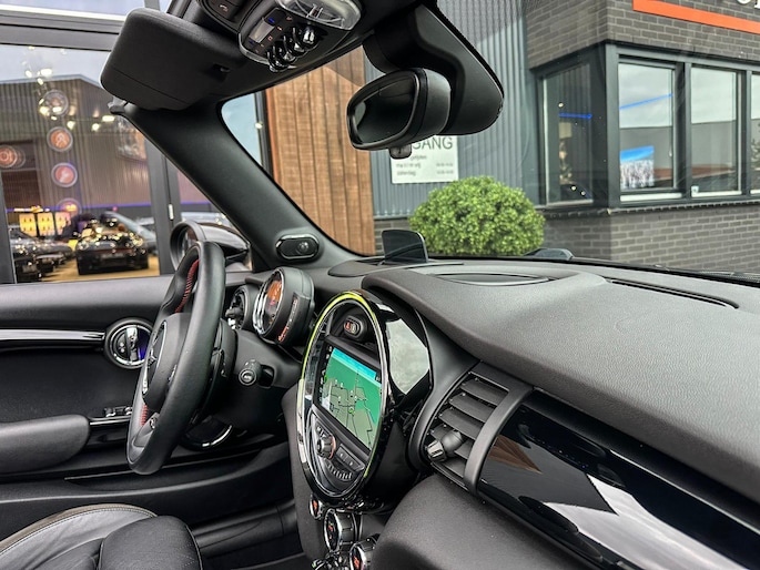 Unieke origineel Hollands geleverde Mini John Cooper Works cabrio Blackline F1 sportautomaat met een 231pk motor in de prachtige kleur Thundergrey metallic en uitgevoerd met een Union Jack cabriokap.Deze schitterende Mini is uitgerust met alle denkbare opties:Climate control,vollederen interieur carbon black,sportstoelen,stoelverwarming,breedbeeld navigatie,Mini connected XL,head up display,achteruitrijcamera,adaptieve cruise control,Harman Kardon soundsystem,dab tuner,tel,usb,performence control,apple carplay,Mini driving modus,elektrische cabriokap,Union Jack cabriokap,lederen Jcw sportstuur met flipperschakel,mf stuur,automatisch dimmende binnenspiegel,regensensor,facelift model,full black pack, voetgangersbeveiliging,dtc,elektrisch inklapbare spiegels, parkeersensoren voor en achter,parkassist(Mini parkeert zelf in),union Jack achterlichten,led koplampen met uitgebreide functies,18 inch JCW circuit spoke velgen,lichtpakket met Mini logo's,actieve cruise control,gezichtspakket,chili 2 pakket,68.000km origineel Nap,nieuwprijs 57.000euro.Prachtig uitgevoerde Mini Jcw in concoursstaat voor de echte liefhebber.