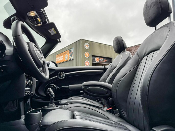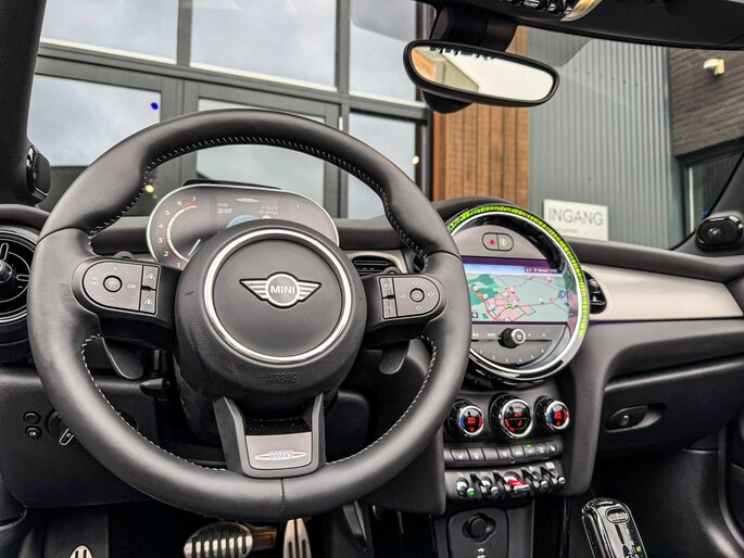 Unieke Mini John Cooper Works cabrio Blackline F1 sportautomaat met een 231pk motor in de prachtige kleur Enigmatic black black metallic .Deze schitterende Mini is uitgerust met alle maar dan ook alle denkbare opties:Climate control,vollederen interieur Yours lounge,sportstoelen,stoelverwarming,stuurwiel verwarmd,digitaal dashbord,breedbeeld navigatie,Mini connected XL,head up display,Harman Kardon soundsystem,achteruitrijcamera,adaptieve cruise control,dab tuner,tel,usb,performence control,apple carplay,Mini driving modus,elektrische cabriokap,lederen Jcw sportstuur met F1 flipperschakel,mf stuur,automatisch dimmende binnenspiegel, regensensor,facelift,full black pack, voetgangersbeveiliging,dtc,elektrisch inklapbare spiegels, parkeersensoren voor en achter,parkassist(Mini parkeert zelf in),union Jack achterlichten,led koplampen met uitgebreide functies,18 inch JCW velgen circuit spoke,lichtpakket met Mini logo's,actieve cruise control,gezichtspakket,chili 2 pakket,36.000km origineel,nieuwprijs 63.000euro.Prachtig uitgevoerde Mini Jcw in concoursstaat voor de echte liefhebber.