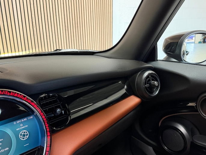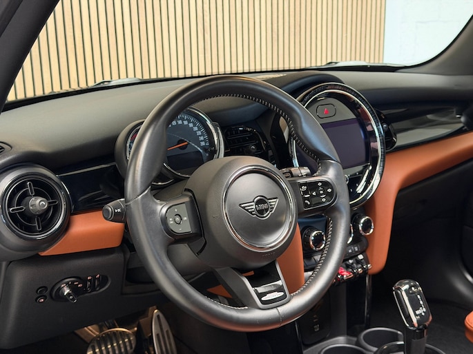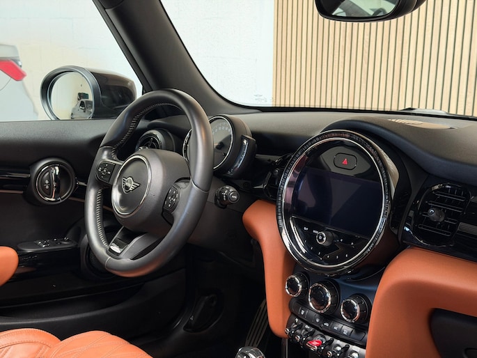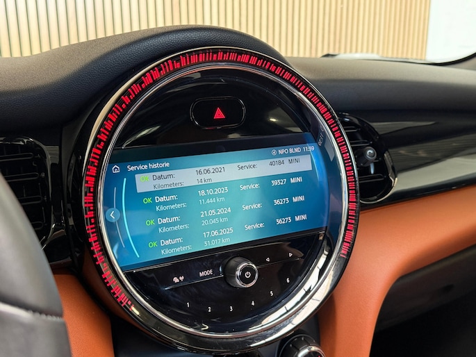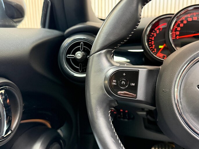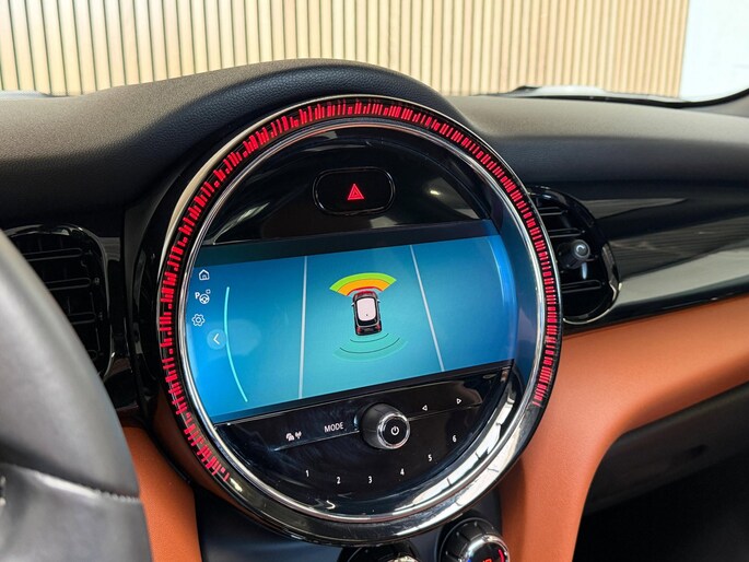 Veilig en comfortabel rijden wordt nog eens versterkt door Connected Services, zodat u diverse vitale functies van de auto altijd kunt checken in de app. Met de automatische airconditioning selecteert u de gewenste temperatuur. Het systeem doet de rest. De meeste schade bij inparkeren komt van een randje of paaltje dat u even niet zag. Maar de parkeersensoren zien alles en waarschuwen op tijd. De elektronische systemen in deze Mini helpen u actief om comfortabeler te rijden. Een automatisch inschakelbare verlichting en een regensensor houden de omstandigheden onderweg in de gaten. De cruise control zorgt voor zorgeloos, ontspannen en zuinig rijgedrag. Deze auto is voorzien van navigatiesysteem, DAB ontvangst, sportstuurwiel, keyless entry, buitentemperatuurmeter en automatisch dimmende binnenspiegel.