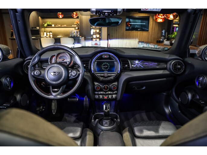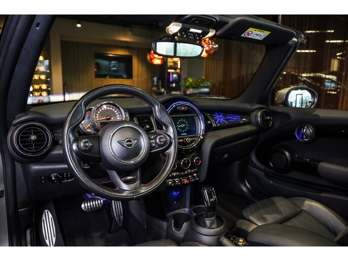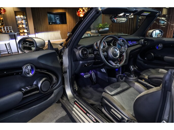 Mini Cabrio 1.5 Chili JCW Aerodynamica pakket, Sportstoelen Leder Carbon Black, Navigatie systeem, Keyless Go, DAB, Led, LC Display, Always open pakket, Licht pakket, Opberg pakket, Color-Line Carbon Black, Exitement pakket, Lmv 17''
