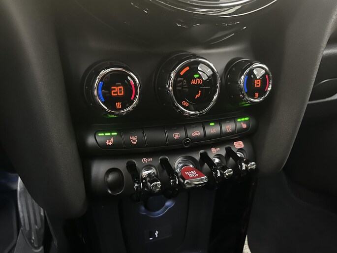 Achteruitrijden en inparkeren worden een eitje dankzij de achteruitrijcamera. In het zeldzame geval van een storing weet u nog eerder dan de monteur wat er mankeert. Uw smartphone met remote services geeft direct inzicht. Dankzij het Harman/Kardon audiosysteem geniet u van sublieme geluidstechnologie. Automatische airconditioning verwarmt of koelt het interieur met een druk op de knop. De automatisch inschakelbare verlichting en regensensor zorgen dat onderweg automatisch de verlichting en de ruitenwissers worden ingeschakeld. Daarmee nemen ze u veel werk uit handen. Met Harman Kardon-audiosysteem, full map navigatiesysteem, DAB ontvangst, cruise control, sportstuurwiel en buitentemperatuurmeter is deze Mini helemaal compleet.