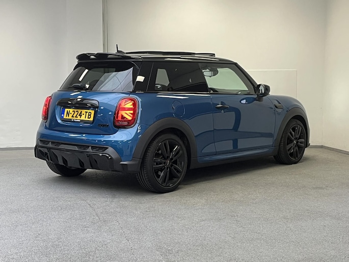 De vormgeving van deze Mini Cooper is stijlvol maar ingetogen en dat maakt meteen duidelijk dat u van deze auto pure kwaliteit mag verwachten. Deze auto is bijna nieuw, ondanks dat hij uit 2022 komt; hij heeft slechts 30207 kilometer afgelegd. In deze auto vindt u een benzinemotor en een automatische transmissie. Dat noemen ze nou een ruimtelijk effect: het elektrisch bediende glazen panoramadak. Bij de uitrusting van deze auto horen onder meer 17 inch lichtmetalen velgen, LED koplampen, adaptief dempingsysteem, dakspoiler, in hoogte verstelbare passagiersstoel en extra getint glas.