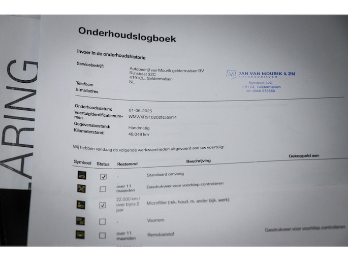 - Onderhoudsboekje (fysiek)