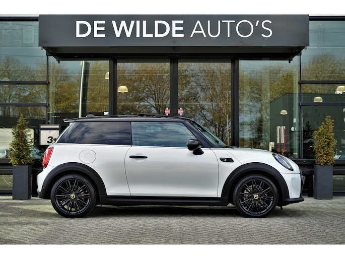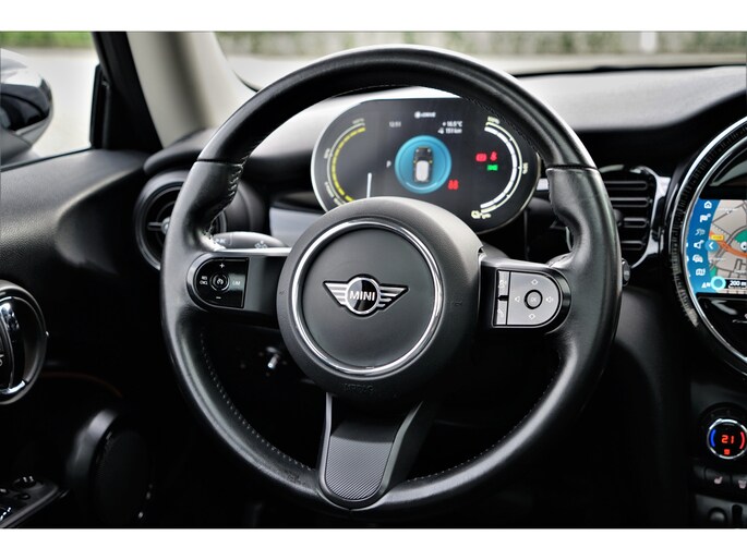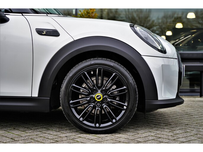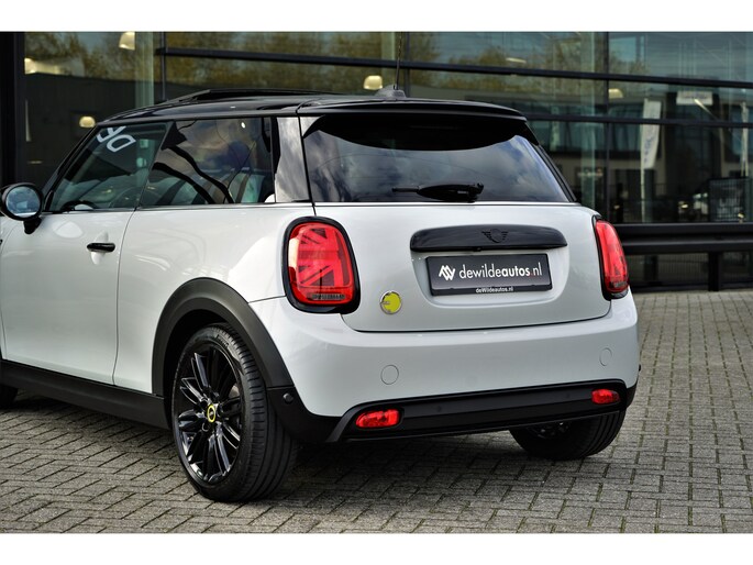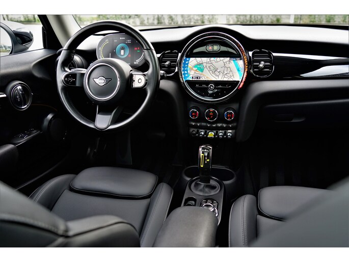 MINI Cooper Electric 33 kWh in de speciale kleur 'White Silver Metallic' met een zwart Lederen interieur. De MINI is compleet MINI dealer onderhouden en heeft slechts één eigenaar gehad. De MINI Electric heeft een vermogen van 184 pk en een actieradius van +/- 200 / 234 (WLTP) kilometer.