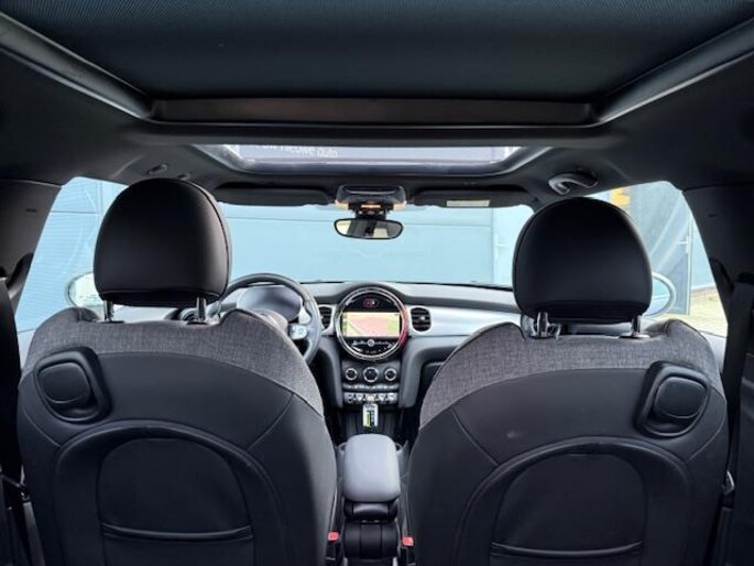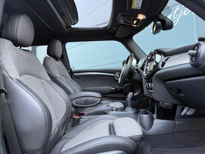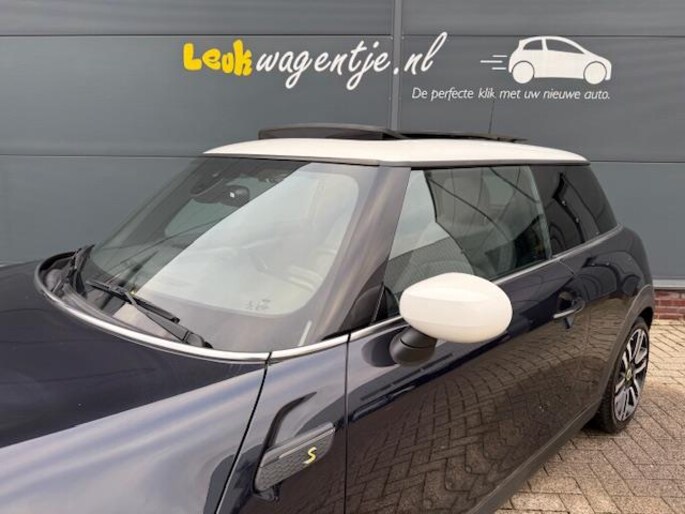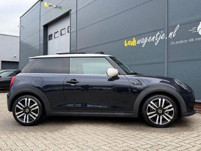 Het mysterieuze 'enigmatic black' is bij deze elektrische Mini Cooper SE Collection afgetopt met een wit dak waarin een schuifdak is opgenomen. En zo zijn er véél extra opties. Zoals keyless entry, een parkeercamera, tweekleurige 17 inch lichtmetalen velgen en het comfort plus-pack. Dat alles maakt deze auto een bijzondere en een bijzonder luxe verschijning. De lage kilometerstand van nauwelijks 20.500 km is een extra pluspunt. En dan die fantastische rijeigenschappen ...