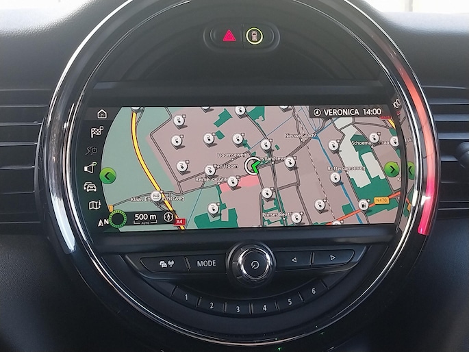Het personaliseren van uw cockpitinterface is mogelijk met het digitale dashboard in deze auto. Met een gerust hart achteruitrijden? Dat kan, dankzij de achteruitrijcamera. Vergeten af te sluiten? Bandenspanning onvoldoende? De speciale app geeft u direct een seintje met behulp van Connected Services. Onder alle omstandigheden een volmaakt geluid onderweg: het high performance audiosysteem zorgt ervoor. Zuinig, veilig en ontspannen op pad: dat kan dankzij het aanwezige full map navigatiesysteem. De Mini is standaard voorzien van: achteropkomend verkeer waarschuwing, automatische airconditioning, regensensor, cruise control, sportstuurwiel en keyless entry.