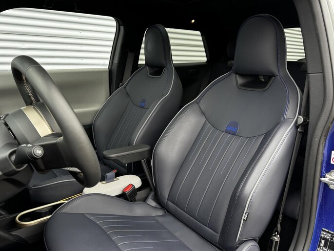 Bijzonder fraaie MINI Cooper SE gehuld in ‘Blazing Blue’ met een ‘Nightshade Blue’ lederen interieur. Een zeer bijzondere configuratie en precies zoals wij hem nieuw zouden bestellen. Aan fijne opties natuurlijk geen gebrek: 18 inch MINI Night Flash wielen, Panoramadak, John Cooper Works actieve stoelen, Stoelverstelling elektrisch met memory, Alarmsysteem, 360 graden camera, Harman Kardon audio, Driving Assistant Plus, Head Up display en ga zo maar door. Niet vreemd dat de nieuwprijs door de €50.000,- heen schoot. Afkomstig van de eerste eigenaar, origineel Nederlands geleverd, nog lopend in de MINI fabrieksgarantie en helemaal klaar voor de volgende liefhebber dan wel liefhebster. Hopelijk tot snel in Harderwijk! Net binnen, de uitgebreide fotoreportage volgt.