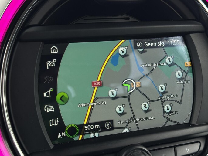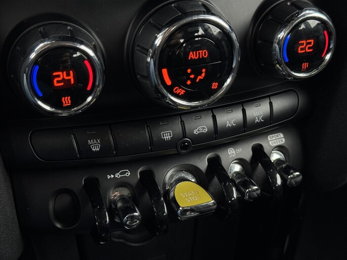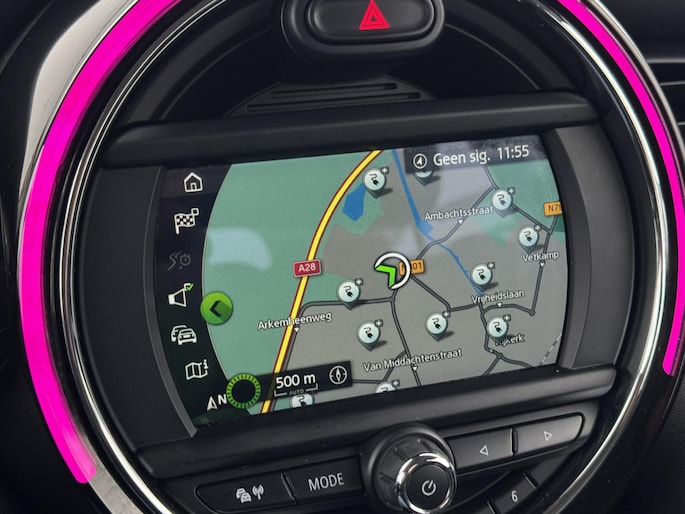 Altijd de benodigde functies in beeld? Het digitale dashboard zorgt ervoor. De conditie van deze auto is 24/7 inzichtelijk dankzij Connected Services. U bedient het full map navigatiesysteem en het audiosysteem via knoppen op het stuur. Zo kunt u steeds uw aandacht gericht houden op de weg. Onbedoeld snijden na het inhalen gebeurt niet meer, dankzij de achteropkomend verkeer waarschuwing. Dankzij automatische airconditioning is het interieur behaaglijk warm of verfrissend koel. De uitrusting van deze Mini is met regensensor, cruise control, sportstuurwiel, centrale deurvergrendeling met afstandsbediening en boordcomputer behoorlijk compleet.