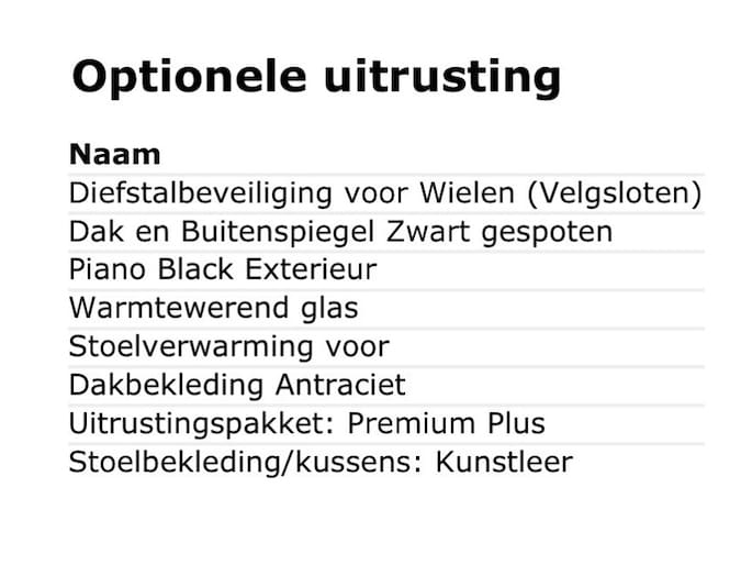 Wij maken elke advertentie met de meeste zorgvuldigheid. Het kán echter voorkomen dat uit de automatische voertuiginformatie een optie naar voren komt die helaas toch niet op de auto aanwezig is. Gelukkig gebeurt dat maar héél zelden. Wil je absolute zekerheid? Neem dan een kijkje in onze showroom. Je bent van harte welkom!