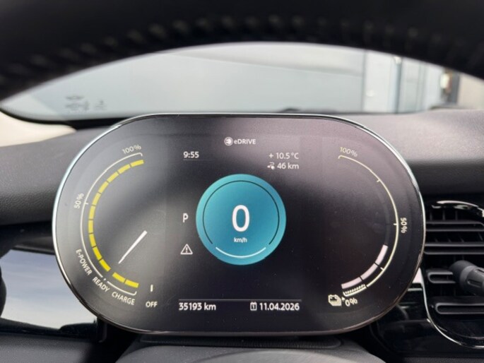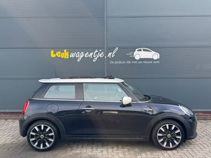 Enigmatic black … betoverend zwart met een donkerblauwe ondertoon. En dan een wit dak. Wat een prachtige combinatie! Het geeft precies aan wat je van deze Mini Cooper SE mag verwachten: een en al verrassing. Positieve verrassing wel te verstaan. Zakelijk rijden? Dit is een BTW-auto.