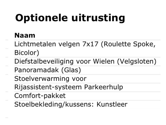 Wij maken elke advertentie met de meeste zorgvuldigheid. Het kán echter voorkomen dat uit de automatische voertuiginformatie een optie naar voren komt die helaas toch niet op de auto aanwezig is. Gelukkig gebeurt dat maar héél zelden. Wil je absolute zekerheid? Neem dan een kijkje in onze showroom. Je bent van harte welkom!