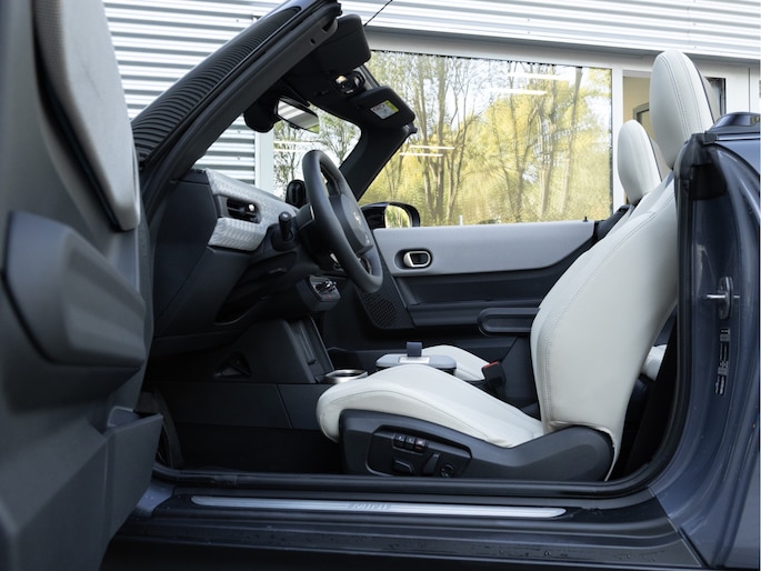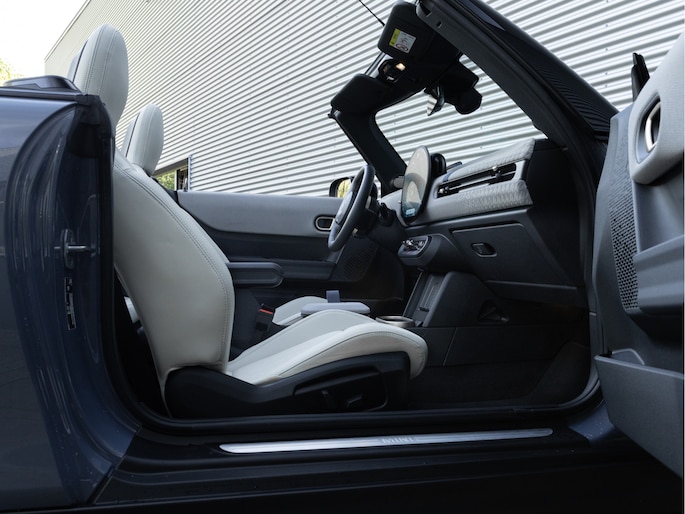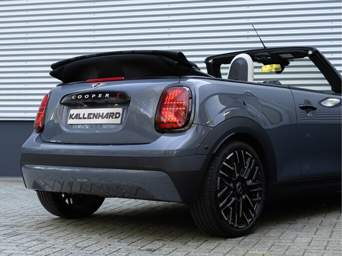 Deze MINI Cooper S Cabrio heeft het allemaal: een dikke motor, Pack XL, stoelen met geheugen en massage, Harman Kardon Audio, Head-up display, 18 inch Night Flash spoke wielen in two tone en uiteraard die heerlijke kleurcombinatie bestaande uit een Copper Grey exterieur en een Vescin Beige interieur.