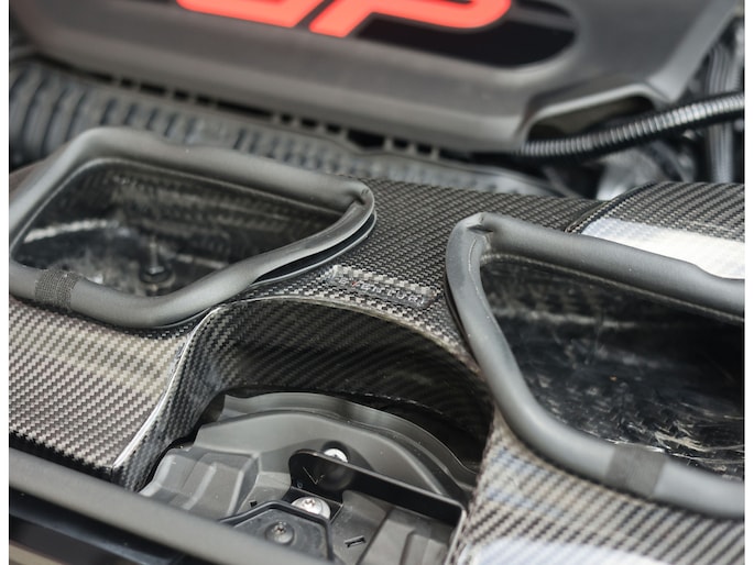 Het exterieur laat geen twijfel bestaan. De brede wielkasten, de prominente dubbele achterspoiler en de specifieke GP-diffuser onderstrepen zijn extreme karakter. Daarnaast is de achterspoiler verder uitgebreid met extra spoiler extensies van Vulcan Alpha voor een extra agressieve look en meer downforce. De centraal geplaatste dubbele uitlaat en de 18-inch GP-velgen in “Racing Grey” maken het geheel technisch en doelgericht. Rode accenten en de individuele nummering 1149/3000 bevestigen de exclusiviteit van dit specifieke exemplaar.