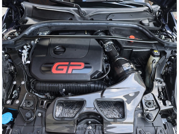 De 2.0-liter turbomotor levert standaard 306 pk en 450 Nm koppel, goed voor 0-100 km/u in 5,2 seconden en een topsnelheid van 265 km/u. Daarmee is dit de krachtigste en snelste productie-MINI ooit. Echter is dit exemplaar verder aangepakt met een ECU tune, Milltek downpipe met sportcatalysator en een Remus uitlaatsysteem. Met deze aanpassingen zou de MINI GP nu ruim 350 PK en 530 Nm koppel produceren, ongekend!