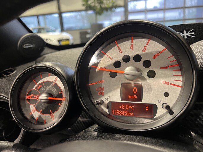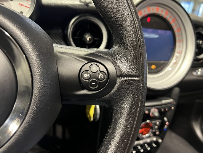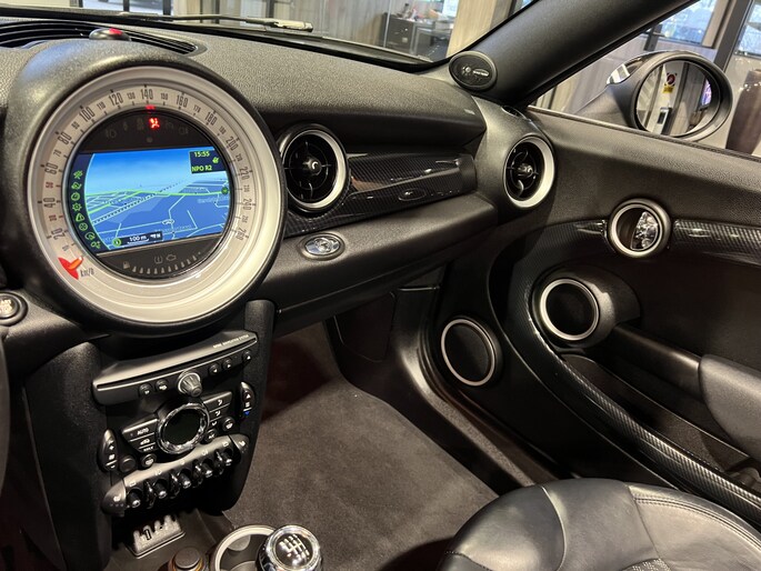 Er is geen bestemming die het aanwezige navigatiesysteem niet kent. Dat rijdt lekker! In een auto als deze kunt u niet zonder automatische airconditioning, zodat de temperatuur altijd goed is. Voor het ware fingerspitzengefühl zorgt de audiobediening op het stuur. Een plekje vinden in de binnenstad is één, inparkeren is twee. Voor dat laatste heeft deze MINI Roadster prima parkeersensoren die u een handje helpen. De cruise control zorgt voor zorgeloos, ontspannen en zuinig rijgedrag. Met lederen stuur, centrale deurvergrendeling met afstandsbediening en boordcomputer is deze auto helemaal compleet.