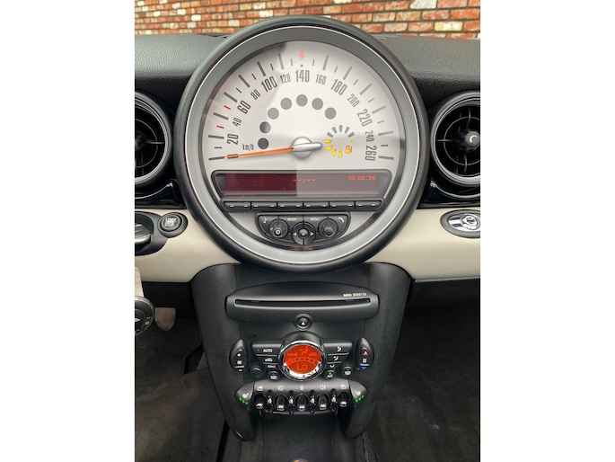 Natuurlijk is er ook automatische airconditioning aanwezig. De meeste schade bij inparkeren komt van een randje of paaltje dat u even niet zag. Maar de parkeersensoren zien alles en waarschuwen op tijd. Deze Mini is voorzien van lederen sportstuur, buitentemperatuurmeter, centrale deurvergrendeling met afstandsbediening, toerenteller en lederen versnellingspook.