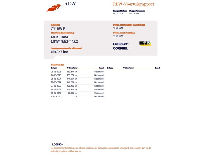 Kilometerstand gecontroleerd
