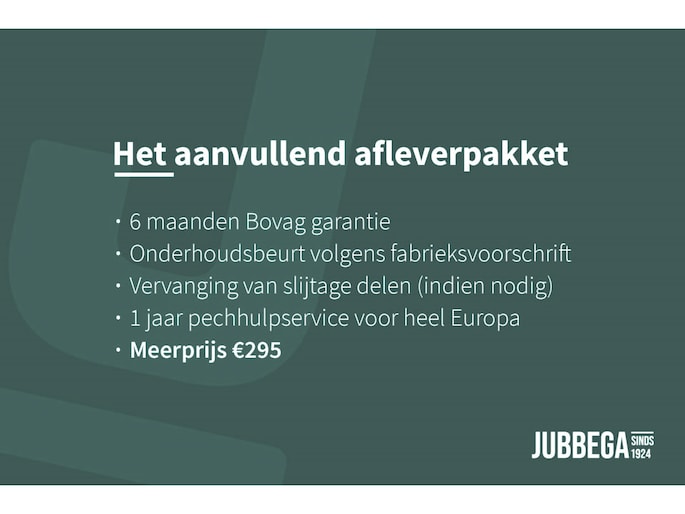 Optioneel afleverpakket (zonder meerprijs): BOVAG Garantie 12 maanden: https://www.bovag.nl/BovagWebsite/media/BovagMediaFiles/Downloads/Garantie%20en%20voorwaarden/Algemene-Garantievoorwaarden-Auto-1-2-2018.pdf