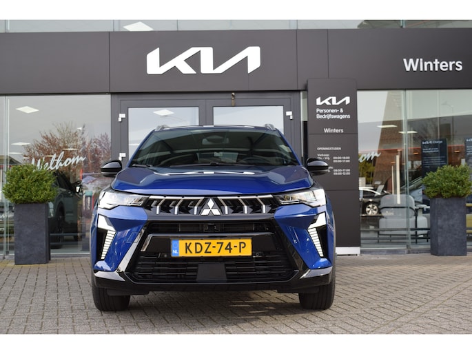 Mitsubishi ASX 1.8 HEV AT Intense+ uitgevoerd met hybride aandrijflijn en automatische transmissie. De Intense+ uitvoering beschikt onder andere over een uitgebreid multimediasysteem met touchscreen, navigatie, Apple CarPlay / Android Auto, achteruitrijcamera, parkeersensoren, climate control, cruise control, keyless entry/start, lichtmetalen velgen, LED-verlichting en diverse rijhulpsystemen zoals rijstrookassistent, verkeersbordherkenning en noodremassistent.