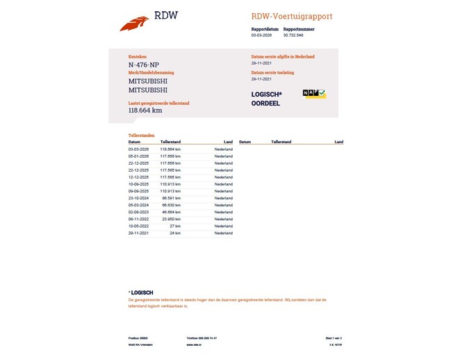 Kilometerstand gecontroleerd