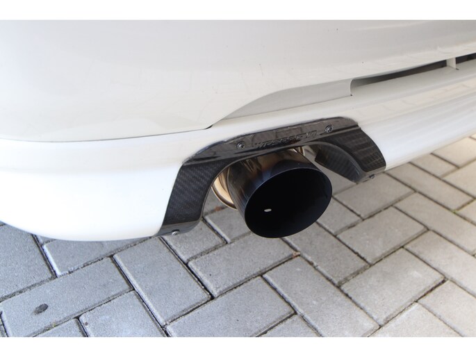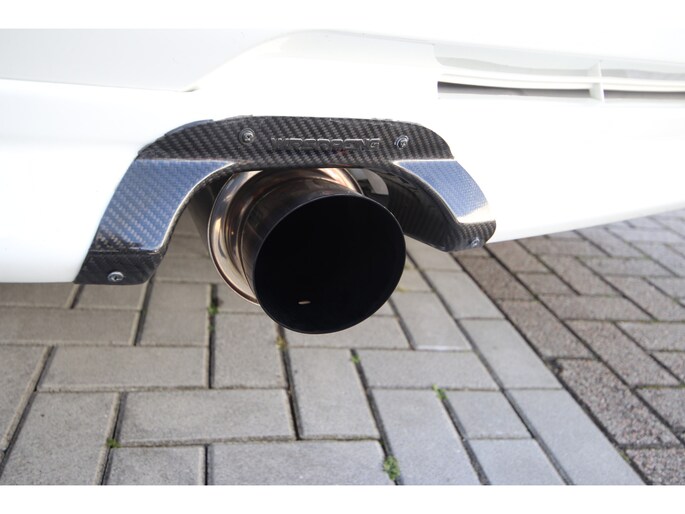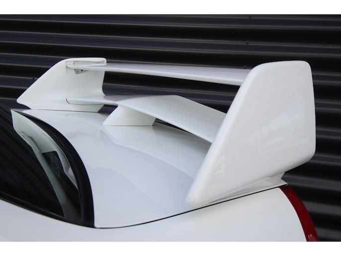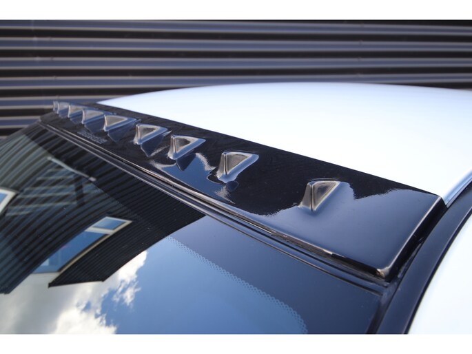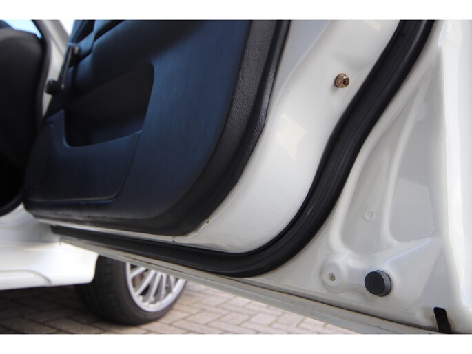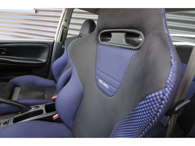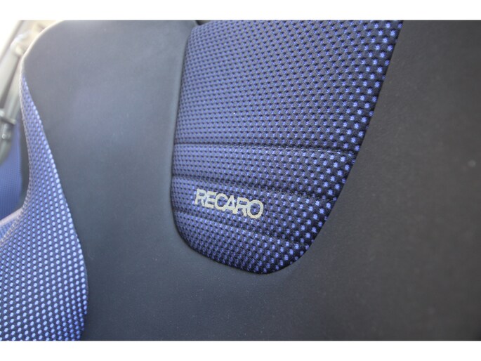 Ook is de kleurencombinatie zeer smaakvol te noemen, de carrosserie is gespoten in het Scotia white (W83) . Een zeer fraaie combinatie met het antraciet met blauw afgewerkte Recaro interieur.