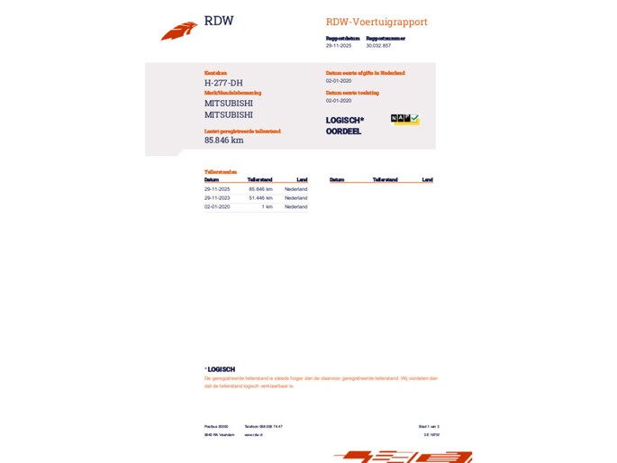 Kilometerstand gecontroleerd