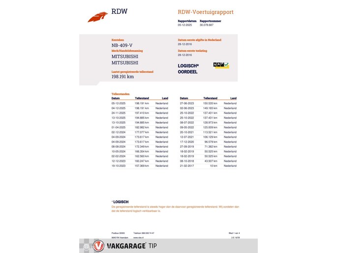 Kilometerstand gecontroleerd