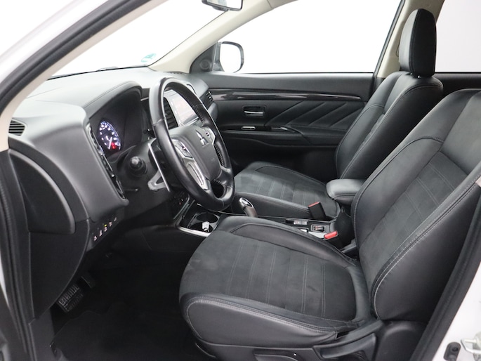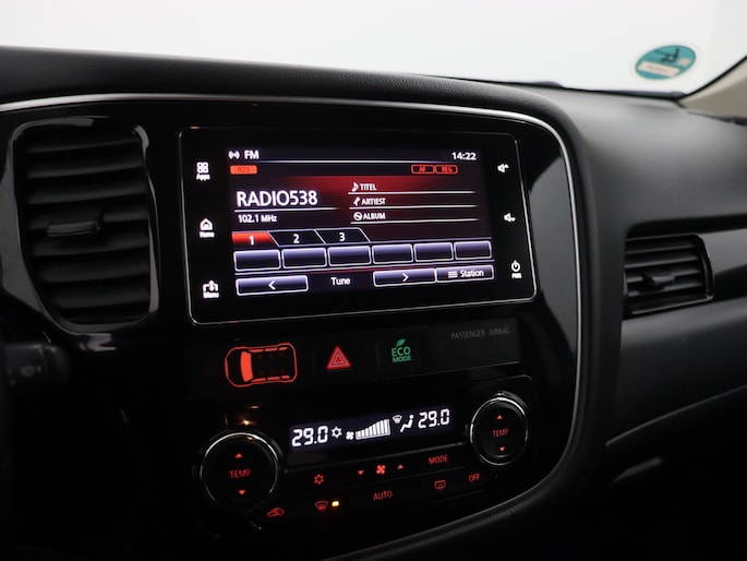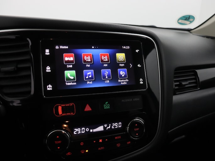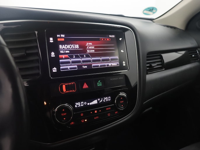 2.0 PHEV Pure stuur en stoel-verw, airco, navi, aklep-autom, lane contr, cruisecont, half leer, arijcam, Apple Carplay/Android Auto, De Mitsubishi Outlander 2.0 PHEV Pure (2018, automaat) is een praktische en comfortabele plug-in hybride SUV die ideaal is voor zowel dagelijkse ritten als langere vakantietochten. Dankzij de