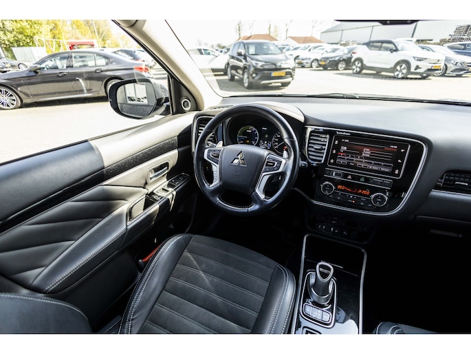 De Mitsubishi Outlander is gebouwd met hoogwaardige techniek en maakt het rijden van lange ritten, maar ook korte stukjes, tot een feestje. Als u een laag brandstofverbruik en goede prestaties belangrijk vindt, dan bent u uitstekend bediend met de viercilinder benzinemotor. De verwarmbare voorstoelen benadrukken nog maar eens dat we hier te maken hebben met een regelrechte verwenauto voor bestuurder en bijrijder. De strakke sportstoelen hebben niet alleen de looks, maar bewijzen ook hun functie als u wat meer vraagt in de uitdagende bochten. Volop licht en ruimtelijk gevoel geeft het elektrische bediende glazen panoramadak. De elektrische achterklep opent met een druk op de knop, zodat u gemakkelijk toegang heeft tot de bagageruimte. Comfortabel houvast krijgt u van het verwarmd stuurwiel. De uitmonstering van deze auto wordt gecompleteerd door onder meer 18 inch lichtmetalen velgen, Full LED koplampen, sportinterieur, donker getint glas achter, in delen neerklapbare achterbank en LED-achterlichten.