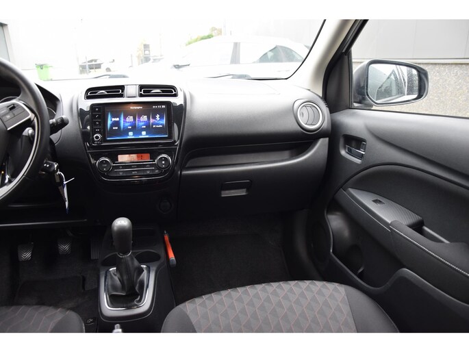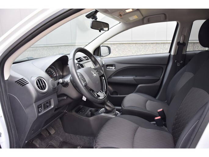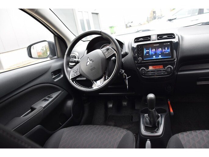 Kom maar, kom maar, kom maar... ho! Prettig hoor, zo'n achteruitrijcamera. Met spraakbediening of de knoppen op het stuur regelt u het audio-installatiesysteem, terwijl u uw blik op de weg gericht houdt. De audio-installatie biedt daarbij glasheldere ontvangst dankzij dab-ontvangst. Deze Mitsubishi Space Star is voorzien van sensoren aan de achterzijde om een achteropkomend verkeer waarschuwing te geven als de afstand tussen u en een achterligger te klein is. De auto is ook uitgevoerd met automatische airconditioning. Het luxeniveau in deze Mitsubishi is niet alleen gericht op comfort, maar ook op uw veiligheid. Tal van sensoren helpen u om de omgeving in de gaten te houden. De automatisch inschakelbare verlichting zorgt dat automatisch de verlichting wordt ingeschakeld als het donker wordt, wat bijvoorbeeld in tunnels erg handig is. En de regensensor zet de ruitenwissers aan zonder dat u eraan hoeft te denken. Ook is de Mitsubishi uitgerust met: cruise control, buitentemperatuurmeter, lederen stuur, centrale deurvergrendeling met afstandsbediening, bagage afdekhoes en boordcomputer.