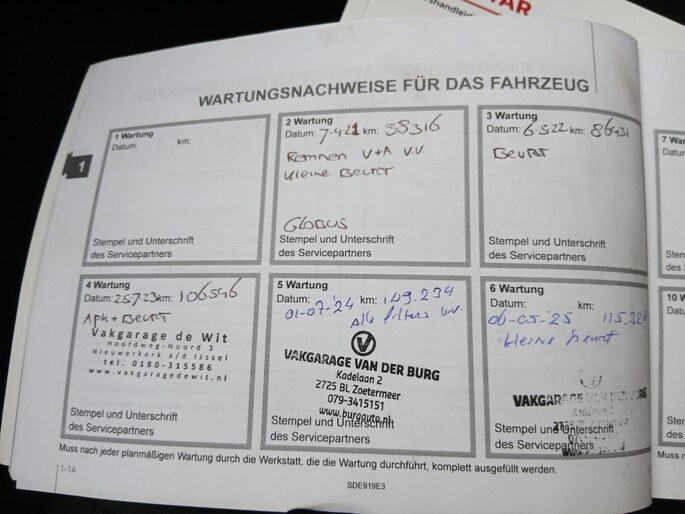 In mei 2025 bij 115.000km heeft de auto een onderhoudsbeurt gehad, in juni 2025 is de auto voorzien van 4 nieuwe Hankook zomerbanden en in november 2025 hebben wij een nieuwe accu gemonteerd!