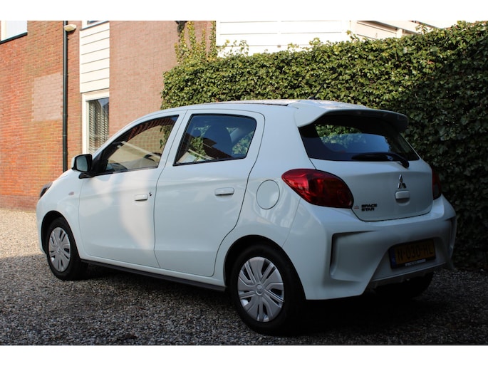 Lekkere muziek maakt elke rit net een beetje korter. Daarom is deze Mitsubishi Space Star voorzien van een eersteklas audio-installatiesysteem en storingsvrije DAB-radio met tientallen zenders. Deze Mitsubishi Space Star is voorzien van sensoren aan de achterzijde om een achteropkomend verkeer waarschuwing te geven als de afstand tussen u en een achterligger te klein is. Het drukke verkeer eist onderweg al uw aandacht op. Daarom is het goed dat deze Mitsubishi is voorzien van diverse systemen die u assisteren tijdens de rit. Een automatisch inschakelbare verlichting neemt het waar als het donker wordt of gaat schemeren, en schakelt dan automatisch de verlichting in. Op dezelfde manier "ziet" de regensensor de eerste spatjes regen en schakelt dan de ruitenwissers in, en als het harder gaat regenen zet hij de ruitenwissers ook in een snellere stand. Natuurlijk heeft deze auto ook airconditioning. Ook buitentemperatuurmeter, centrale deurvergrendeling met afstandsbediening, bagage afdekhoes, boordcomputer en verstelbaar stuur horen tot de voorzieningen op deze auto.