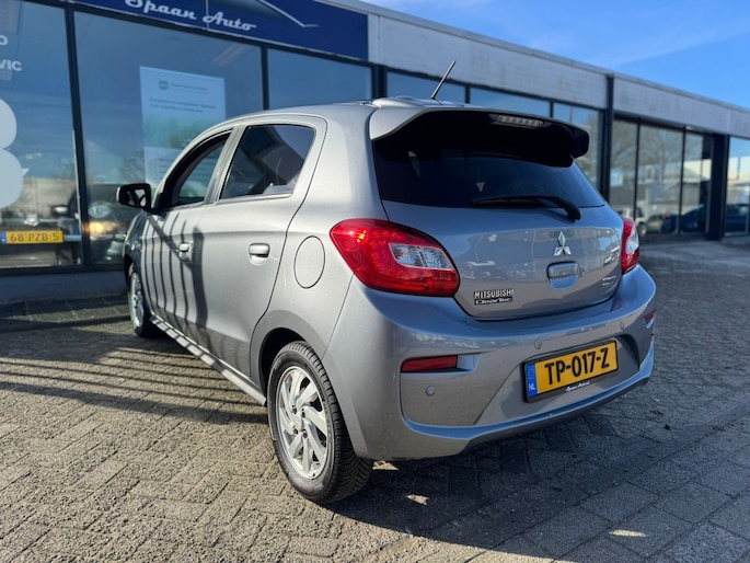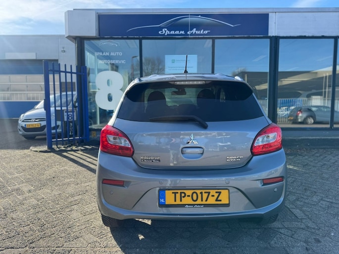 Deze Mitsubishi Space Star staat te popelen om te laten zien wat-ie in huis heeft. Bescheiden in formaat, maar groots in gemak en rijplezier. En zuinig! Met zijn pittige motor stuurt u deze auto vlot door het verkeer heen. Bij de uitrusting van deze Mitsubishi horen onder meer 14 inch lichtmetalen velgen, in hoogte verstelbare passagiersstoel, donker getint glas achter, in delen neerklapbare achterbank en LED-achterlichten.