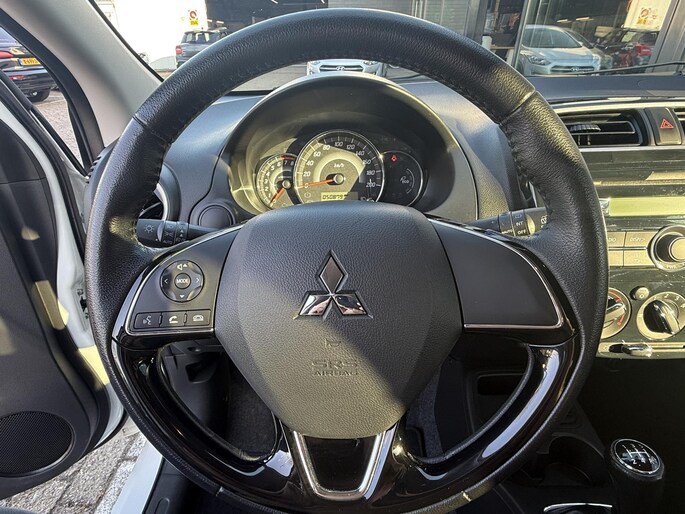Laat u onderweg niet afleiden, de bediening van het audiosysteem gaat met knoppen op het stuur. De kans op een kop-staart botsing wordt sterk gereduceerd door het systeem van achteropkomend verkeer waarschuwing. Natuurlijk is een complete auto als deze ook voorzien van sensoren die de omgeving in de gaten houden. Deze Mitsubishi heeft niet alleen een automatisch inschakelbare verlichting aan boord, maar ook een regensensor. Het maakt niet uit hoe warm het buiten is, want met de airconditioning bepaalt u zelf de binnentemperatuur. U bent in deze Mitsubishi ook voorzien van lederen stuur en versnellingspook en centrale deurvergrendeling met afstandsbediening.