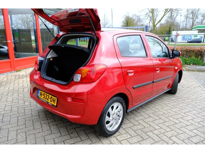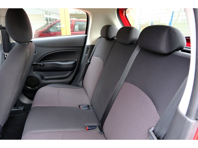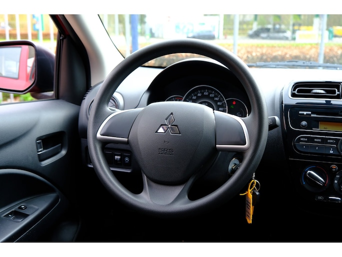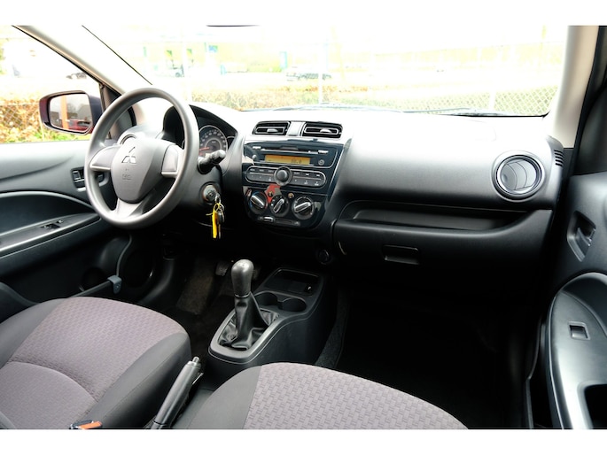 Deze Mitsubishi bewijst het: 'Drive your ambition' is geen loze kreet. De aandrijving van deze Mitsubishi wordt verzorgd door een driecilinder motor en een handgeschakelde vijfversnellingsbak. Tot de uitrusting van deze Mitsubishi behoren ook 14 inch lichtmetalen velgen, warmtewerend glas, in delen neerklapbare achterbank en snelheidsafhankelijke stuurbekrachtiging.