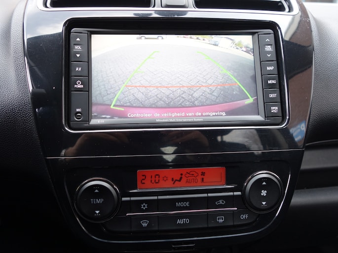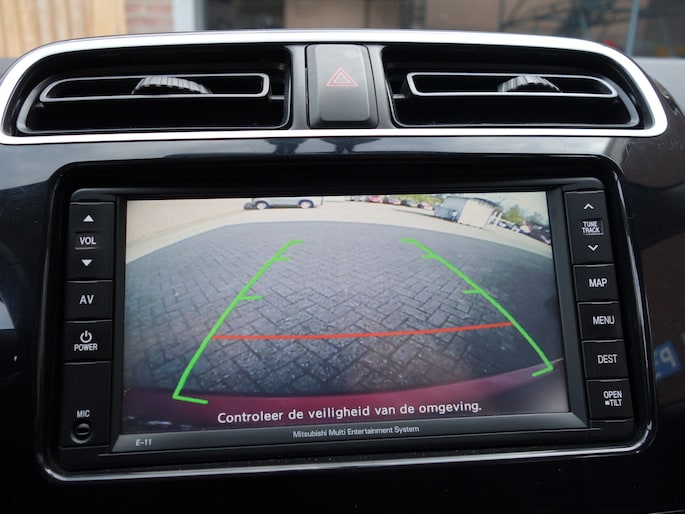 Kom maar, kom maar, kom maar... ho! Prettig hoor, zo'n achteruitrijcamera. Het aanwezige navigatiesysteem is niet meer te updaten. Dat rijdt lekker! Het comfort wordt verhoogd door de aanwezige electronic climate control. Even switchen naar de verkeersinformatie? Ook dat kan met één druk op de knop van de audiobediening op het stuur. Het hoort bij een intelligente auto als deze dat hij zelf in staat is om zijn omgeving in de gaten te houden. Dat doet deze Mitsubishi met een automatisch inschakelbare verlichting en een regensensor. Met cruise control, keyless entry, centrale deurvergrendeling met afstandsbediening, boordcomputer en verstelbaar stuur is deze auto helemaal compleet.