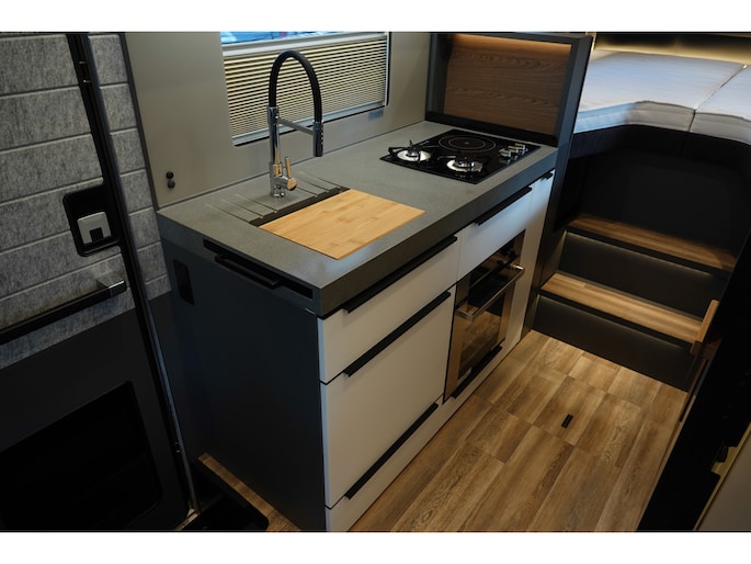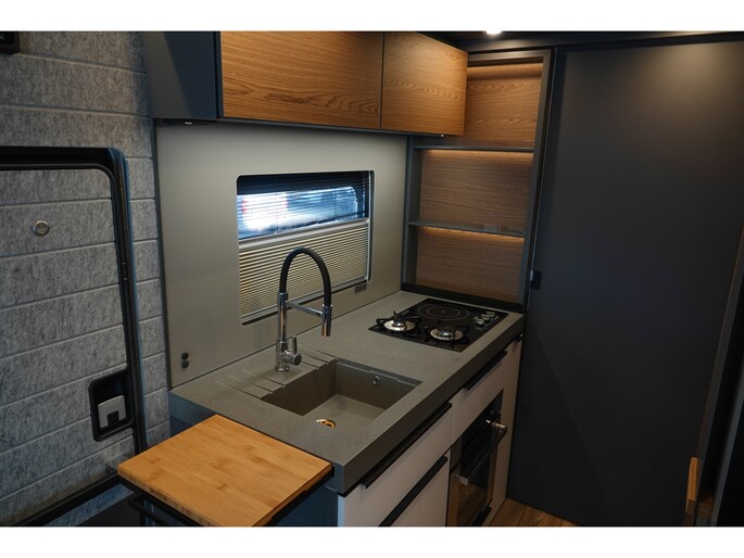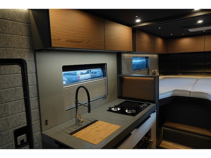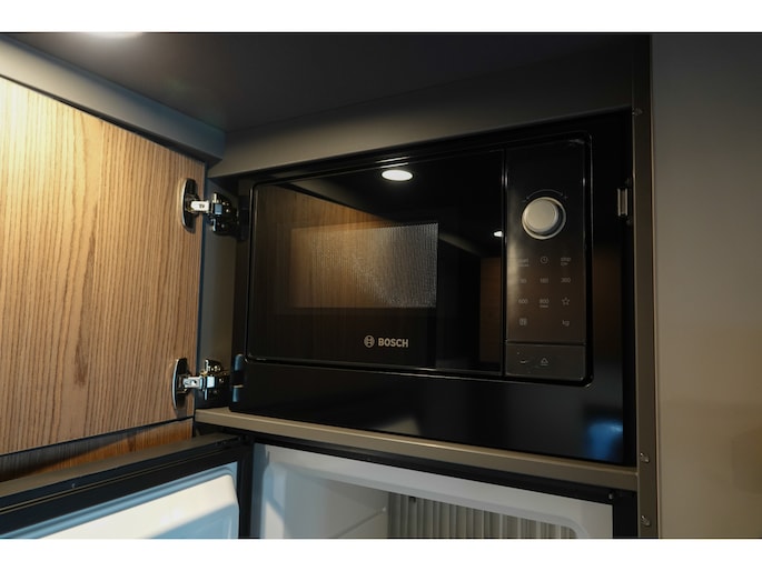 • Achterwandbekleding slaapgedeelte in het zwart