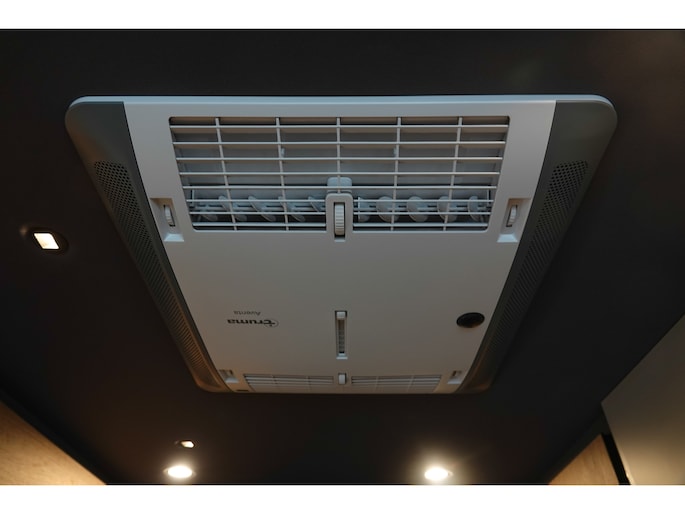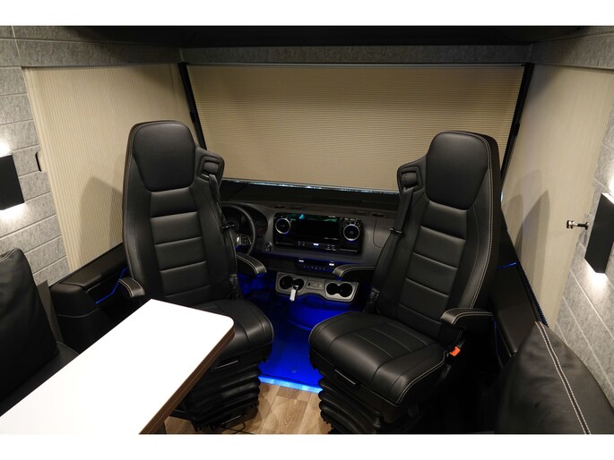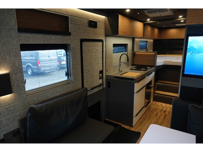 • Antracietkleurige microvezelbekleding op het plafond