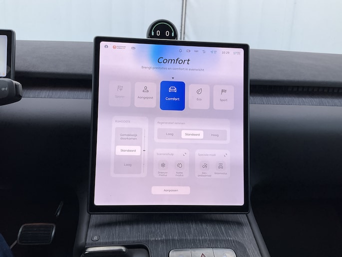 Alle benodigde informatie helder in beeld: het digitale dashboard is een geweldige rijhulp. Het inventieve 360 graden camerasysteem op deze auto heeft de functie om u assistentie te bieden in nauwe ruimtes en straten, waar het achteruit rijden vaak een uitdaging is. Met adaptive cruise control houdt de auto zelfstandig afstand tot uw voorligger. Een veiligheidsverhogende optie waarmee u comfortabel onderweg bent. Het complete geluidsspectrum van de hi-fi krijgt een extra boost door het high performance audiosysteem. Een onopgemerkte tegenligger bij het afslaan wordt automatisch 'gezien' door de ingebouwde kruisend verkeer detectie. Het systeem waarschuwt dan voor een mogelijke aanrijding. Deze NIO is voorzien van WIFI-hotspot, automatische airconditioning, draadloos opladen, DAB ontvangst, keyless entry en automatisch dimmende binnenspiegel.