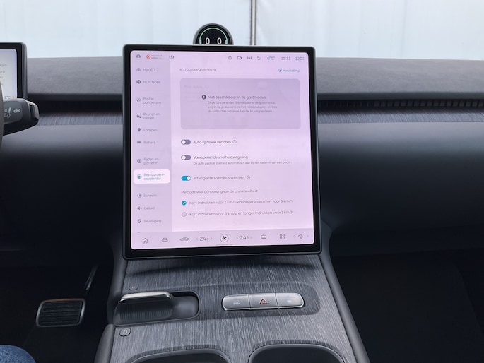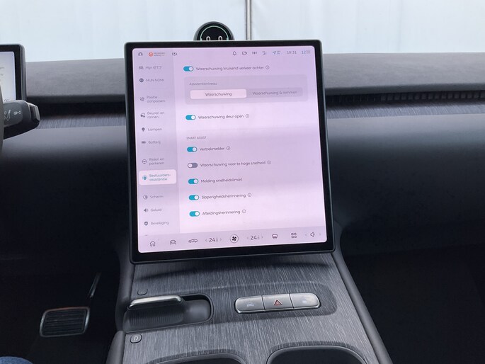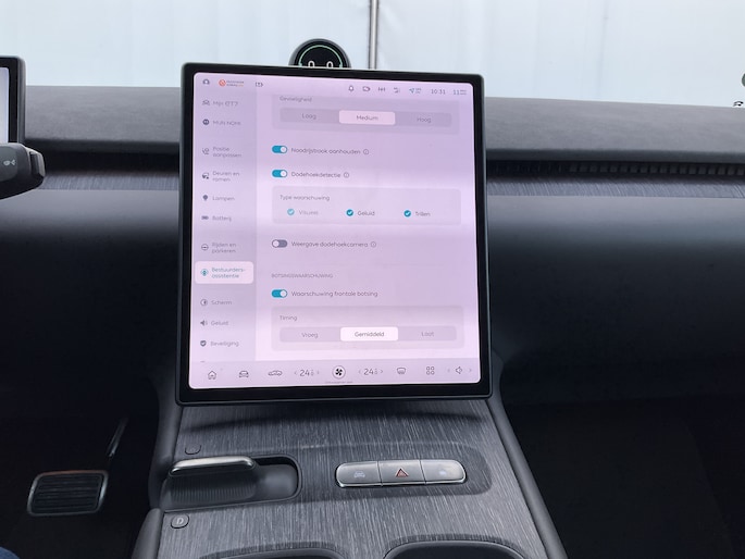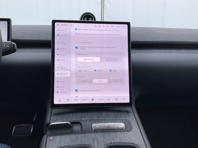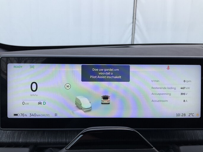Elektronische veiligheidsvoorzieningen helpen u onderweg om de situatie op de weg te beoordelen. Deze systemen waarschuwen u als er een riskante situatie ontstaat, en kunnen in bepaalde gevallen ook zelf ingrijpen. Hou de weg in het vizier! De head-up display zorgt dat u de dashboardinfo in beeld geprojecteerd krijgt. Een belangrijke bijdrage aan de veiligheid onderweg levert de verkeersbord-detectie in deze NIO. Het Lane-keeping systeem garandeert dat u zich niet onverhoeds buiten de lijnen van de rijstrook begeeft. Dankzij veiligheidsvoorzieningen als dodehoekdetectie, forward collision warning system, vermoeidheidsherkenning en autonoom remsysteem, bent u steeds veilig onderweg.