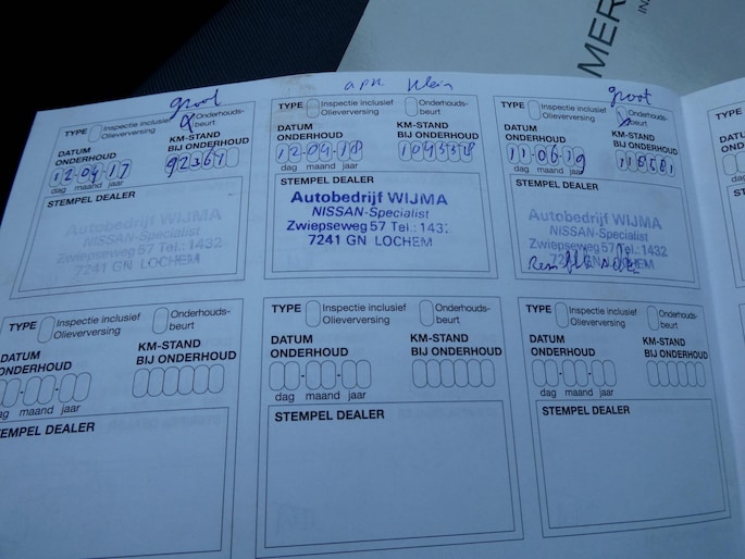 Onderhoudsboekjes: Aanwezig