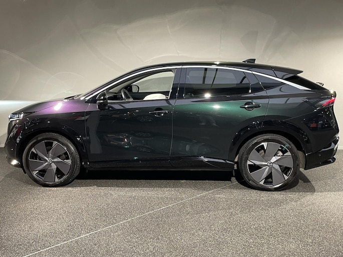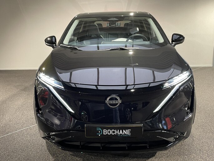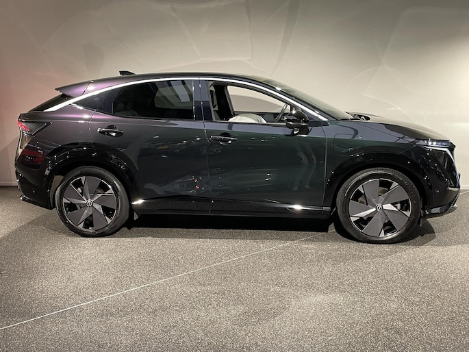 Geavanceerde technologie verpakt in aantrekkelijk design. Met deze Nissan Ariya rijdt u elektrisch in stijl. De aandrijflijn maakt gebruik van de meest moderne accutechniek, zodat het opladen in zo kort mogelijke tijd gebeurt. Het rijbereik van deze auto is groot genoeg om er de meest voorkomende dagelijkse ritten mee te maken. Zit u goed? De stoelen zijn eenvoudig instelbaar dankzij de elektrische bediening met geheugen. Ongeacht hoe koud het buiten is, het verwarmbare stuurwiel samen met de verwarmbare voorstoelen en achterbank, zorgt ervoor dat iedereen in de auto zich snel opwarmt. Als u blij wordt van licht en ruimte dan zult u zeker genieten van het elektrisch bediende panoramadak. De bagageruimte is toegankelijk via een comfortverhogende elektrische achterklep. Ook 19 inch lichtmetalen velgen, LED koplampen, extra getint glas, in delen neerklapbare achterbank en LED-achterlichten horen tot de voorzieningen op deze auto.