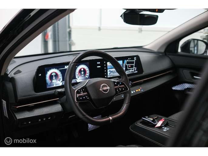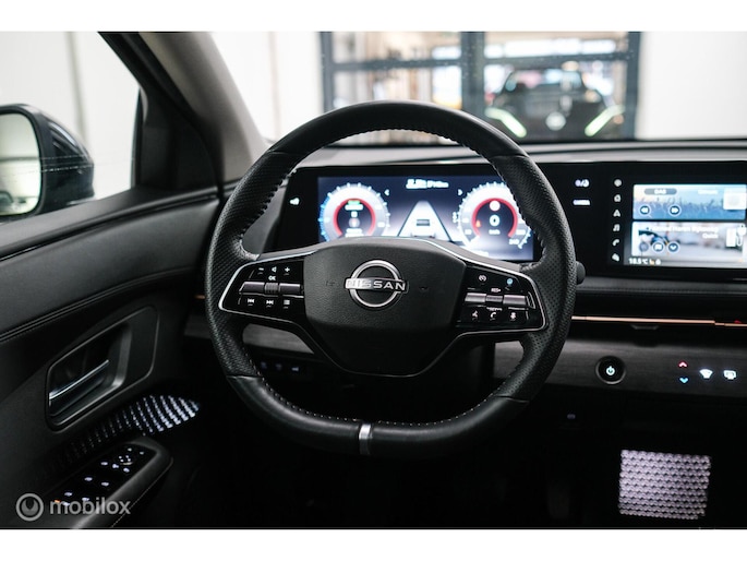 Nissan koppelt vooruitstrevende techniek aan zorgeloos rijplezier. Innovation that excites. Bent u ook toe aan een auto met elektromotor? Goeie keuze! Tijdens gure dagen is het prettig zitten in de verwarmbare voorstoelen. De bagageruimte is toegankelijk via een comfortverhogende elektrische achterklep. Bij de rijke uitrusting horen ook 19 inch lichtmetalen velgen, LED koplampen, donker getint glas achter, in delen neerklapbare achterbank, LED-achterlichten en verstelbare lendensteunen.