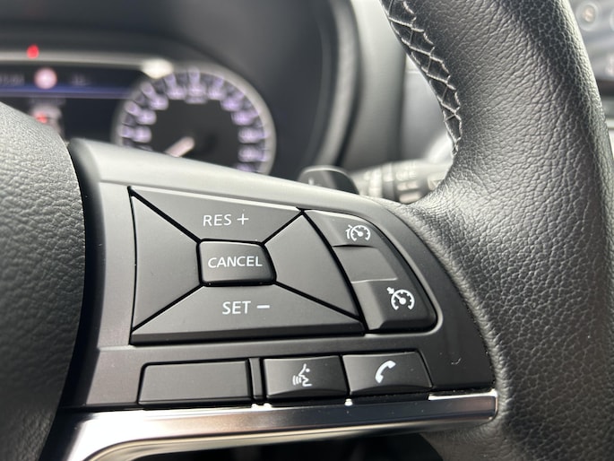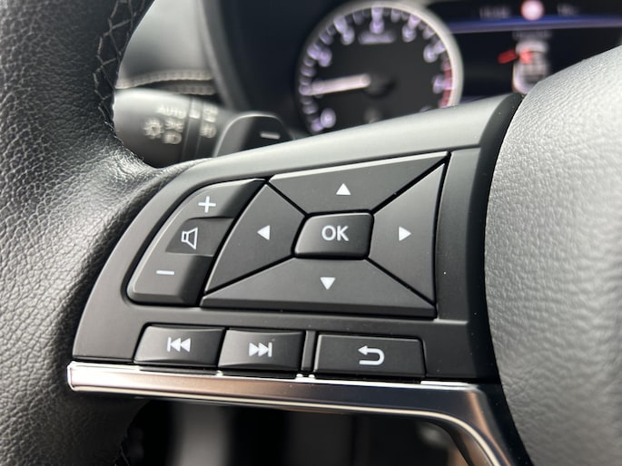 Afstand schatten bij het achteruitrijden? Niet nodig. U weet het precies, dankzij de achteruitrijcamera. Dankzij de spraaksturing bedient u verschillende functies zonder uw handen van het stuur te halen. Als u 'm vraagt 'hoe gaat het?' geeft deze auto zelf het antwoord. Via de app op uw smartphone. U checkt de meters waar u maar wilt, of activeert diverse functies alvast. De achteropkomend verkeer waarschuwing is een mooie veiligheidsoptie, die middels sensoren in de gaten houdt wat er onderweg achter u gebeurt. Voor storingvrije digitale radio-ontvangst zorgt de DAB-ontvanger. U bent in deze Nissan ook voorzien van sportstuur met schakelpaddels, cruise control, airconditioning en centrale deurvergrendeling met afstandsbediening.