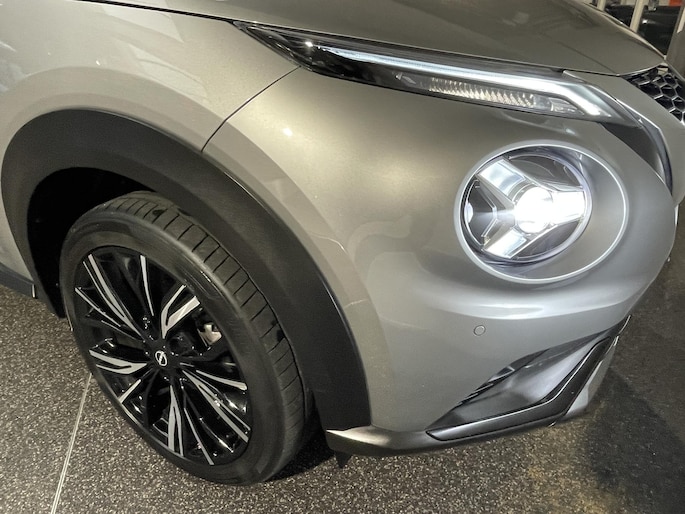 Het silhouet van deze auto maak direct zijn sportieve karakter duidelijk: krachtig, stijlvol en zelfbewust kijkt deze Nissan Juke de wereld in. De aandrijving van deze Nissan wordt verzorgd door een driecilinder benzinemotor en een handgeschakelde zesversnellingsbak. De sportstoelen zorgen ervoor dat u goed en comfortabel zit, ook als het gas erop gaat. De uitmonstering van deze auto wordt gecompleteerd door onder meer 19 inch lichtmetalen velgen, LED koplampen, extra getint glas, in delen neerklapbare achterbank, LED-achterlichten en snelheidsafhankelijke stuurbekrachtiging.