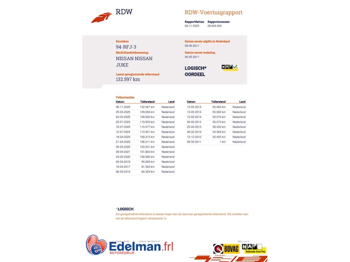 Kilometerstand gecontroleerd