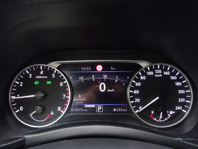 Geavanceerde systemen kunnen tijdens de rit bepaalde taken van u overnemen. Zo kijken er als het ware steeds extra ogen met u mee, zodat u tijdig kunt reageren op noodsituaties. Een belangrijke bijdrage aan de veiligheid onderweg levert de verkeersbord-detectie in deze Nissan. Het Lane-keeping systeem doet precies wat nodig is: waarschuwen en corrigeren bij onbedoelde overschrijding van de rijstrooklijnen. Forward collision warning is een automatisch waarschuwingssysteem dat direct in werking treedt bij gevaar voor een kop-staartbotsing. In deze Nissan vinden we verder een hill hold functie, brake assist en bandenspanningcontrolesysteem.