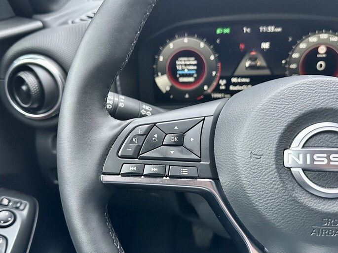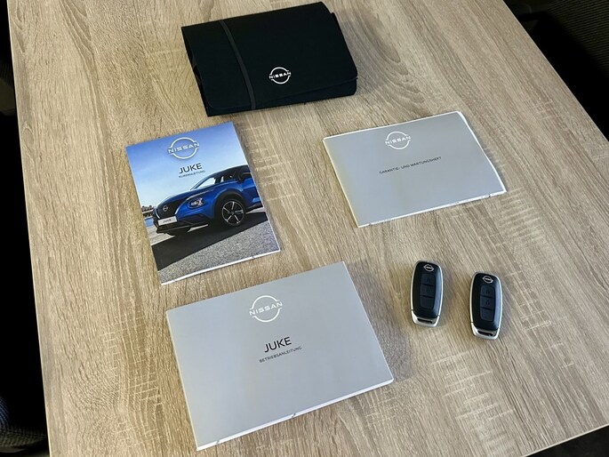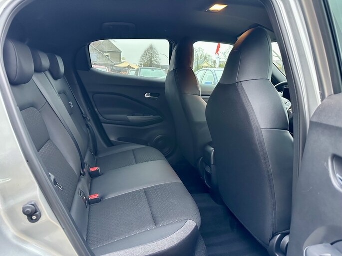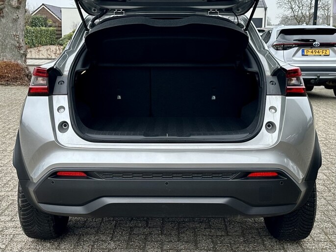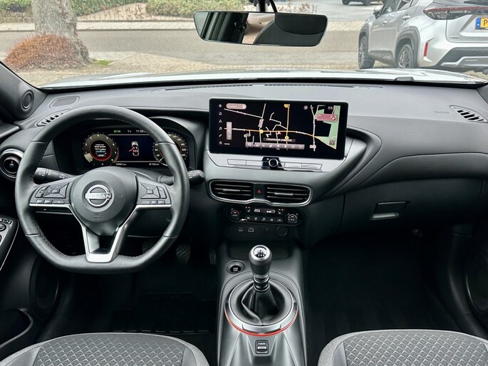 Strak inparkeren wordt een fluitje van een cent door de achteruitrijcamera. De ingebouwde Connected Services vertellen je via de app alles over de status van de auto. Locatie, onderhoudsstatus, brandstofpeil en nog veel meer! Laat je onderweg niet afleiden, de bediening van het audio-installatiesysteem en ook het navigatiesysteem gaat met knoppen op het stuur en met spraak. Natuurlijk is de audio-installatie voorzien van DAB-ontvangst. Deze Nissan Juke is een complete auto anno nu, en dat merk je. Bijvoorbeeld door de aanwezige draadloze oplaadmogelijkheid voor telefoons. De sensoren van de achteropkomend verkeer waarschuwing houden zicht op de dode hoeken achter je. Te weinig afstand tot de achterligger? Het systeem geeft direct een signaal. De uitrusting van deze auto is met WIFI-hotspot, automatische airconditioning, regensensor, cruise control, keyless entry en automatisch dimmende spiegels behoorlijk compleet.