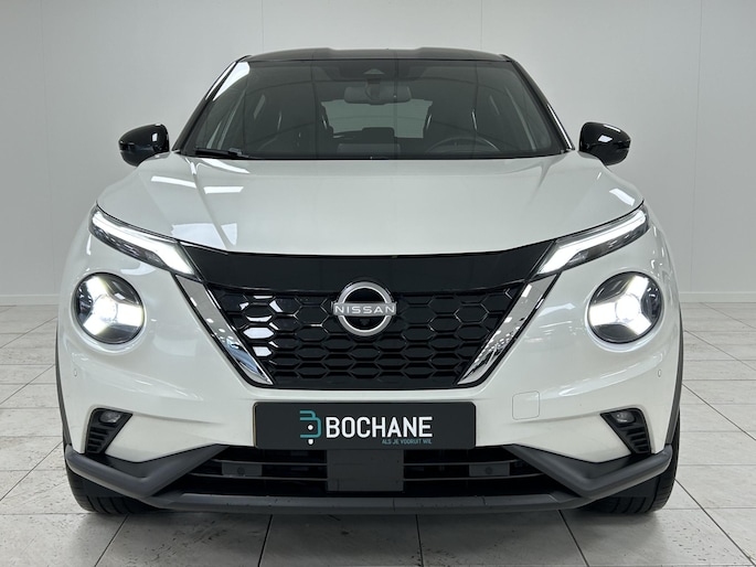 Dankzij de 360 graden camera op de auto, wordt manoeuvreren in smalle straatjes ineens veel eenvoudiger. Met adaptive cruise control houdt de auto zelfstandig afstand tot uw voorligger. Een veiligheidsverhogende optie waarmee u comfortabel onderweg bent. Rijden-stilstaan, rijden-stilstaan. Niks is irritanter en vermoeiender dan filerijden. Daar heeft deze Nissan Juke een oplossing voor: de file assistent, die met radarmeting permanent het tempo aanpast op de voorligger. Zelfs als die stopt. Mocht zich een probleem voordoen, dan krijgt u via remote services op uw smartphone te zien wat er precies aan de hand is, waar u ook bent. Smakelijke subs en knisperend hoog: het high performance audiosysteem geeft elke frequentie een kwaliteitsbehandeling voor akoestisch genieten onderweg. Ook is de Nissan uitgerust met: dashboard met spraakbediening, full map navigatiesysteem, achteropkomend verkeer waarschuwing, automatische airconditioning, DAB ontvangst en regensensor.